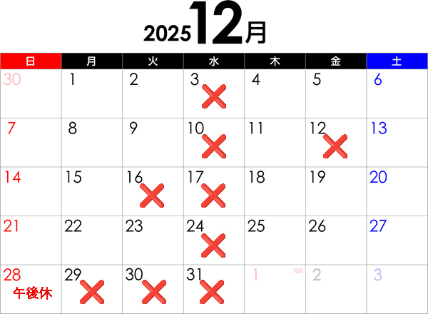 ※12/29〜1/4まで年末年始休業とさせていただきます
