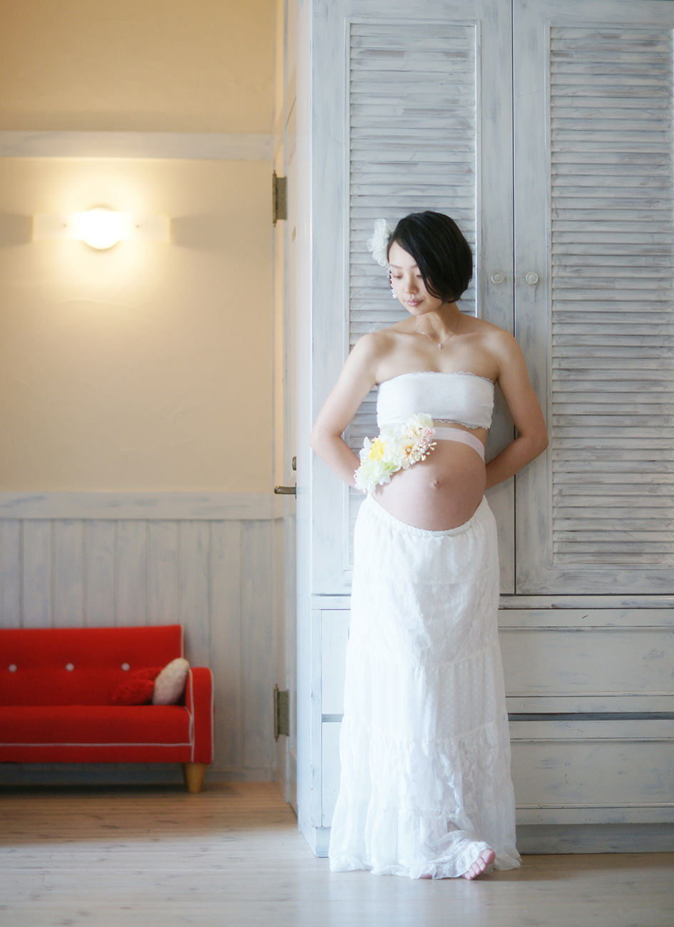 Q:撮影時間はどのくらいかかりますか? | 約1時間〜1時間半です。ママやお腹のお子様に負担のないよう、ゆったりと撮影させていただきます。 |