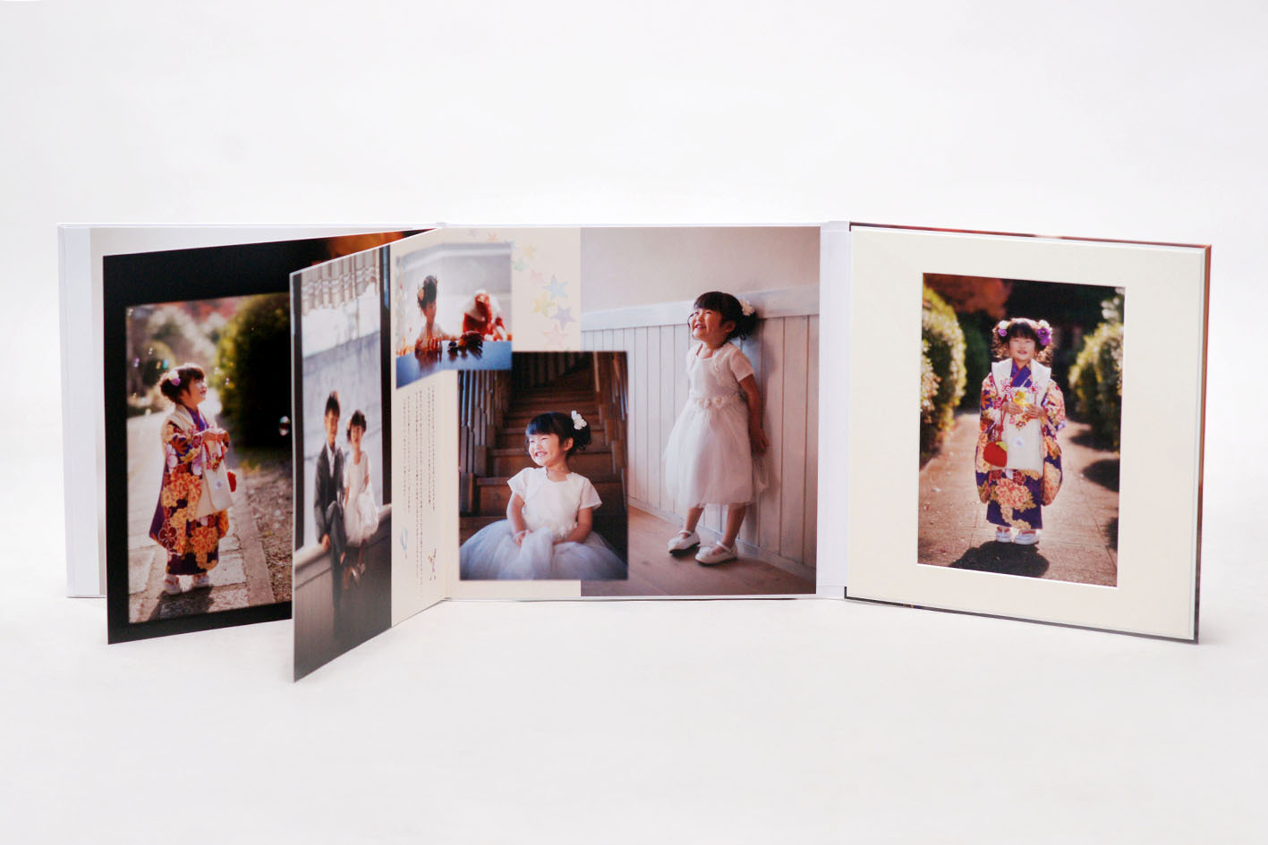 マット付きページと可愛くデザインされたページがMIXされており、30cmを超える写真を始め、お写真入り表紙が魅力的です。