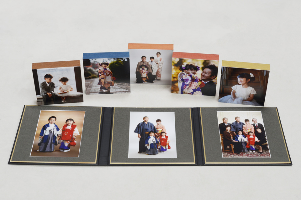 お手軽な大きさの2面アルバムとご両親へのプレゼント用のミニ台紙、